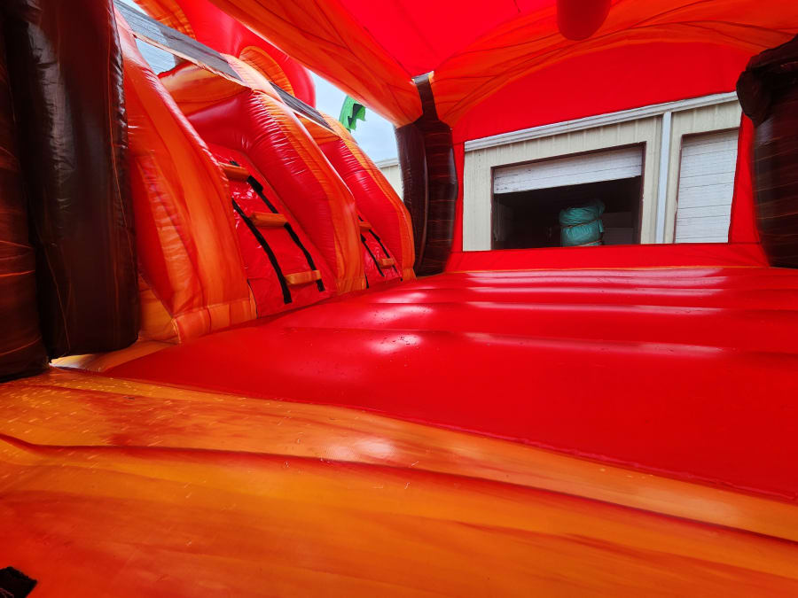Dual Lane Tropical Fireball Bounce House with Slide Wet/Dry (27L 11W 14T)