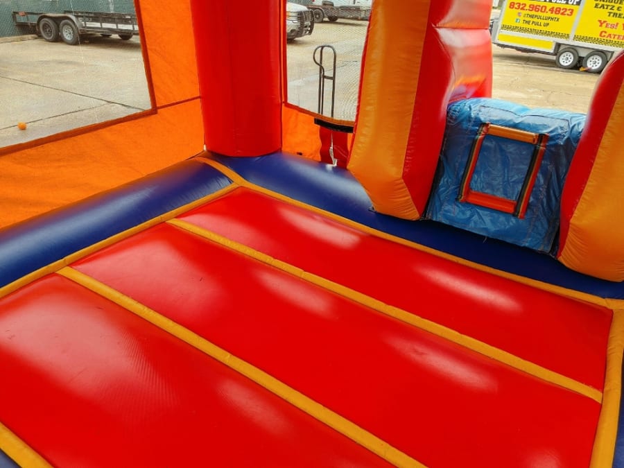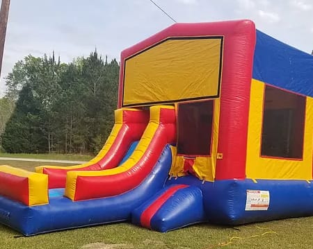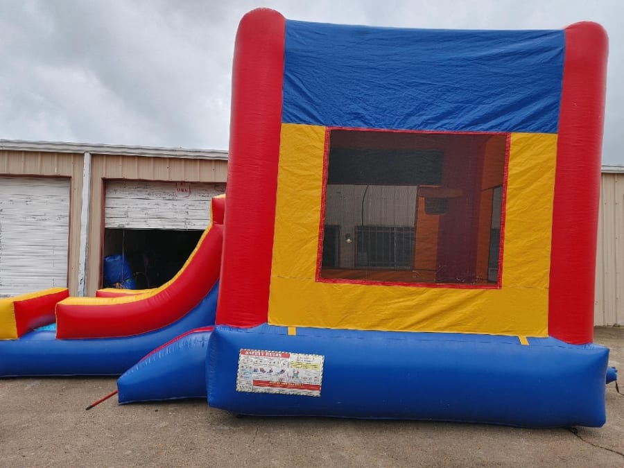 Colors: The Basic Bounce House with Slide is multi-colored, with red, yellow, and blue panels.