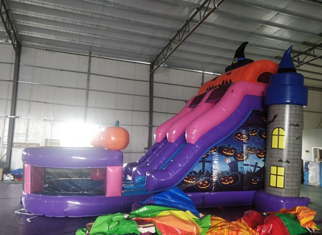We have more Halloween inflatables than any other company! Halloween bounce houses, Halloween obstacle courses, and even Halloween slides!