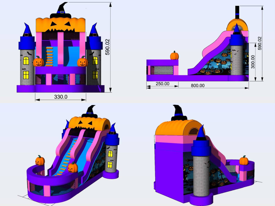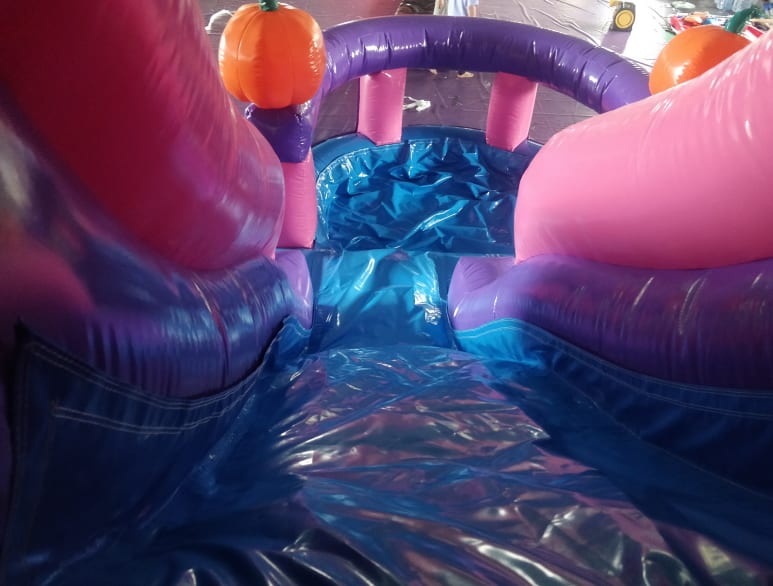 The Giant jack o lantern Pumpkin slide is one of a kind! -- With the image of jack o lanterns on all sides and the ability to climb up and down over and over through this large Halloween slide. This is certainly going to make your party a hit!