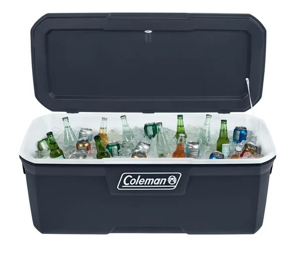Keep the whole crew happy with the Coleman Xtreme 150 qt Cooler. When you've got a hungry, thirsty gang, your average cooler just won't cut it. The green Coleman cooler's spacious interior provides enough room for 223 cans, plus ice. The unit features the same rugged, heavy-duty build that's made it the most trusted name in portable drink and food storage systems.