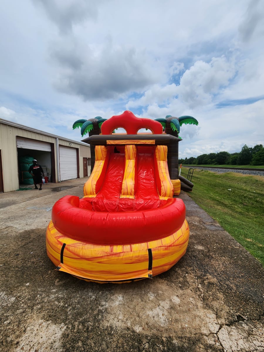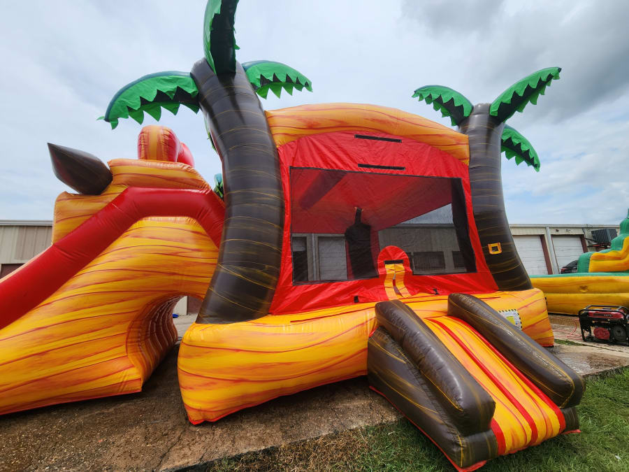 Dual Lane Tropical Fireball Bounce House with Slide Wet/Dry (27L 11W 14T)