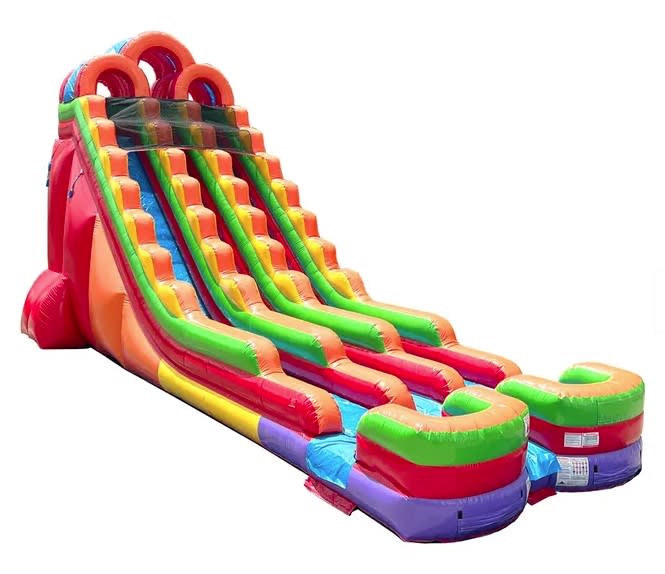 Experience the ultimate in summer fun with our 24 Foot Tall Double Lane BIG ORANGE Water Slide. This gigantic slide promises adrenaline-pumping excitement for children and adults alike. Standing majestically at 24 feet tall and stretching 45 feet long, this slide is designed to provide endless entertainment at any event. Whether you're hosting a backyard party, school carnival, or community festival, this inflatable water slide is a showstopper that will keep everyone coming back for more!